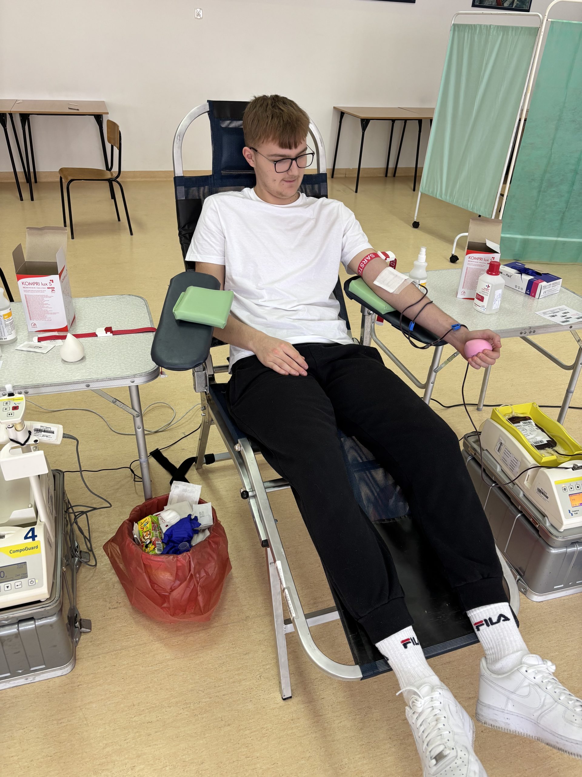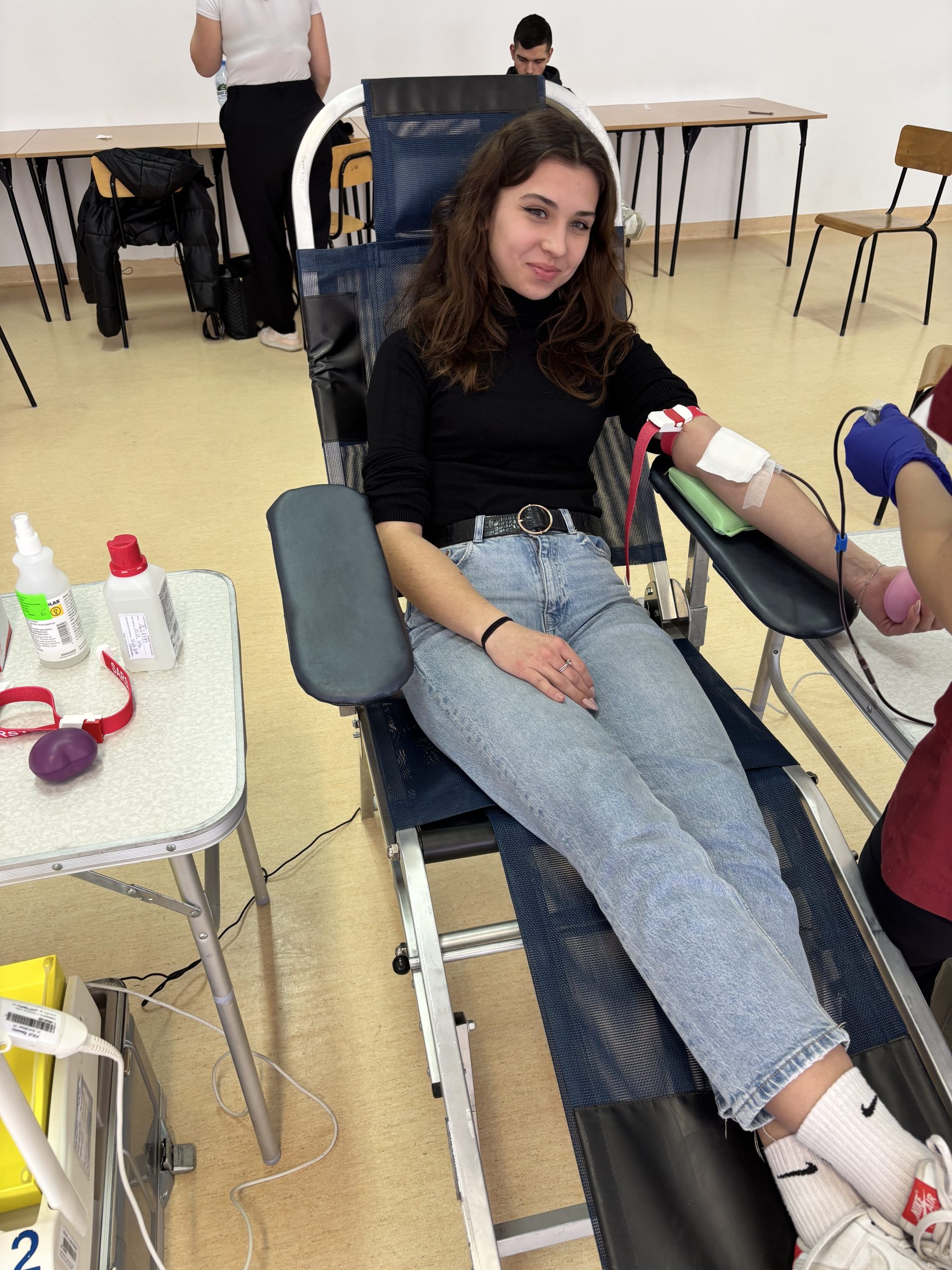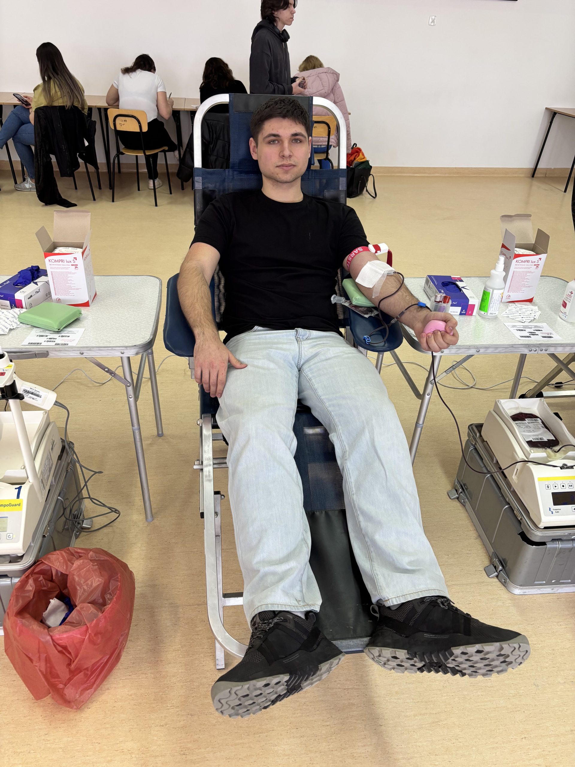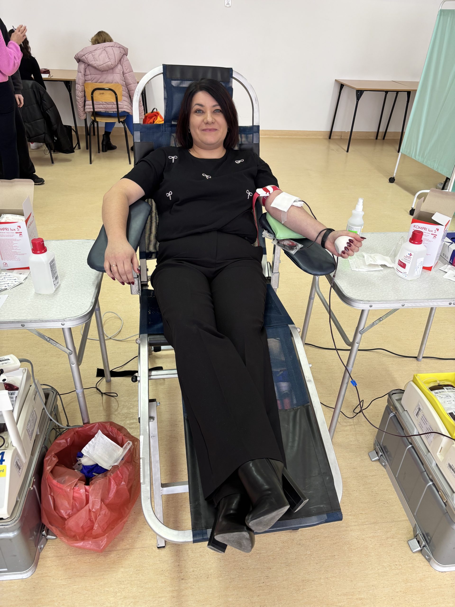 W naszej szkole odbyła się akcja krwiodawstwa zorganizowana we współpracy z Regionalnym Centrum Krwiodawstwa i Krwiolecznictwa w Rzeszowie. Inicjatywa spotkała się z dużym zainteresowaniem – do udziału zgłosiło się 45 chętnych uczniów, rodziców, pracowników szkoły i krwiodawców spoza szkoły . Po przejściu niezbędnych badań i kwalifikacji medycznej krew oddała znaczna część zarejestrowanych uczestników. W efekcie zebrano kilkanaście litrów krwi, która trafi do osób potrzebujących leczenia i ratujących życie transfuzji. Akcja przebiegła sprawnie i w bezpiecznych warunkach, pod czujnym okiem wykwalifikowanego personelu medycznego RCKiK. Dla wielu uczestników było to pierwsze doświadczenie z krwiodawstwem, ale nie brakowało także osób, które oddają krew regularnie, dając przykład odpowiedzialnej postawy społecznej. Dziękujemy wszystkim, którzy zdecydowali się wziąć udział w akcji. Oddana krew to realna pomoc i konkretne wsparcie dla chorych i poszkodowanych. Mamy nadzieję, że tego typu inicjatywy na stałe wpiszą się w życie naszej szkoły i będą cieszyć się równie dużym zainteresowaniem w przyszłości.