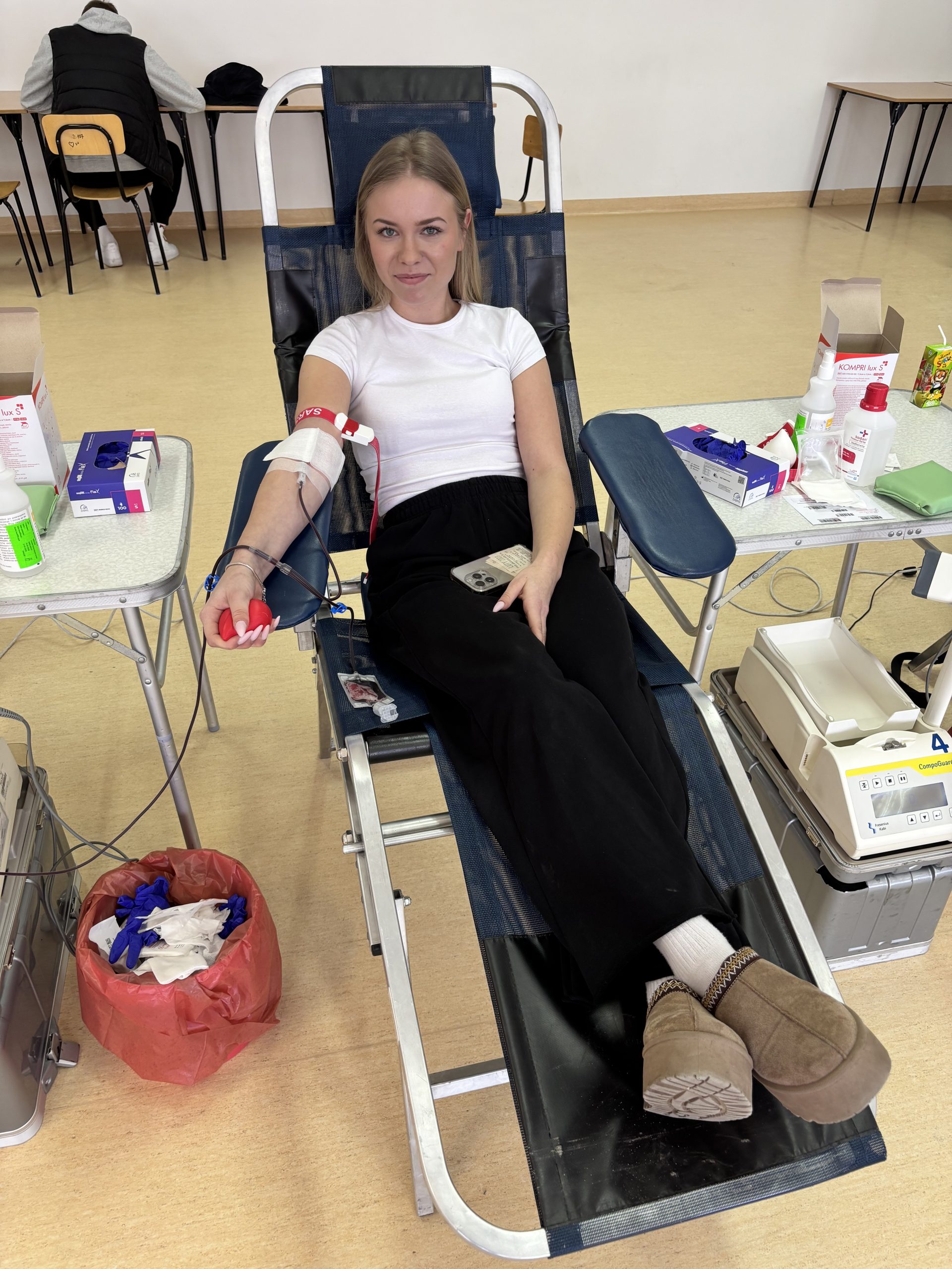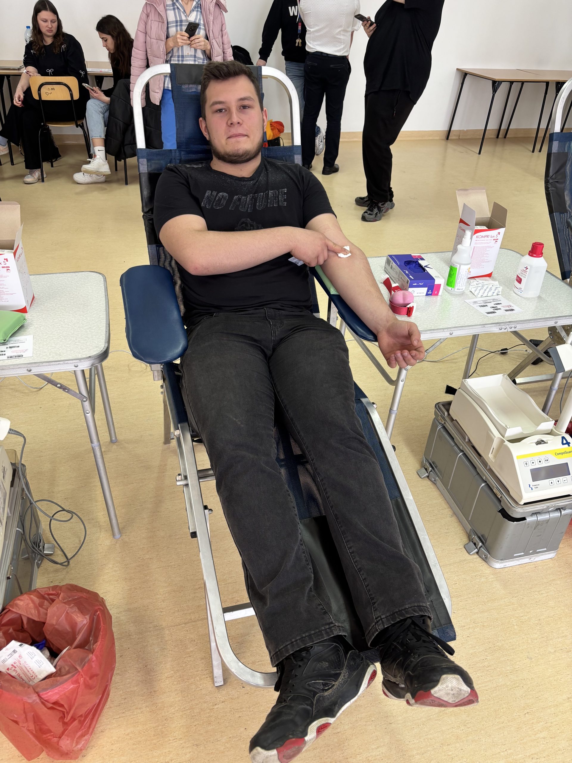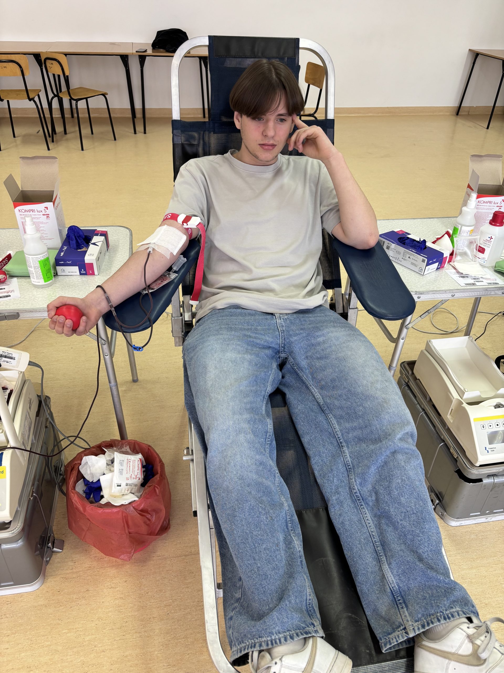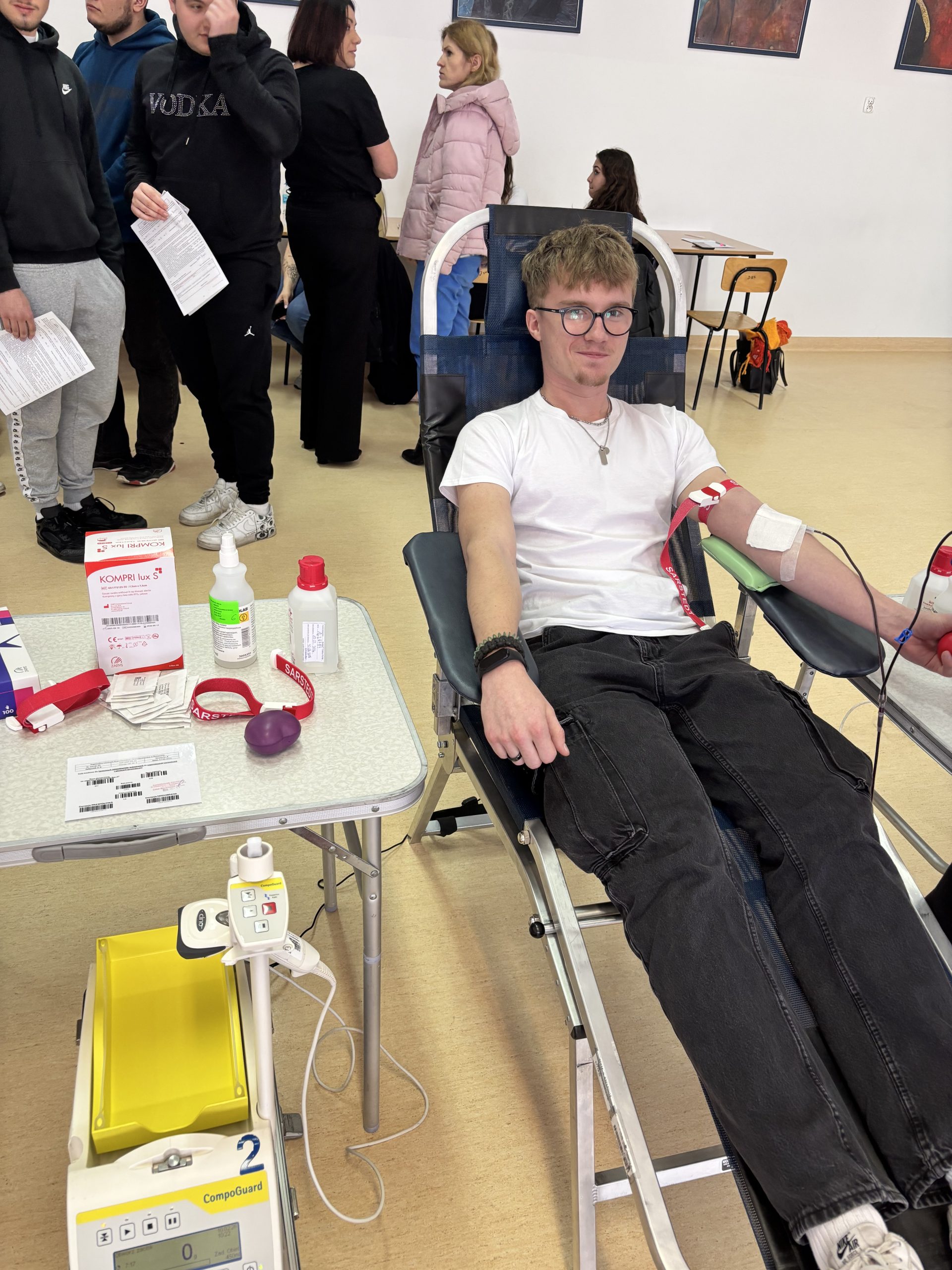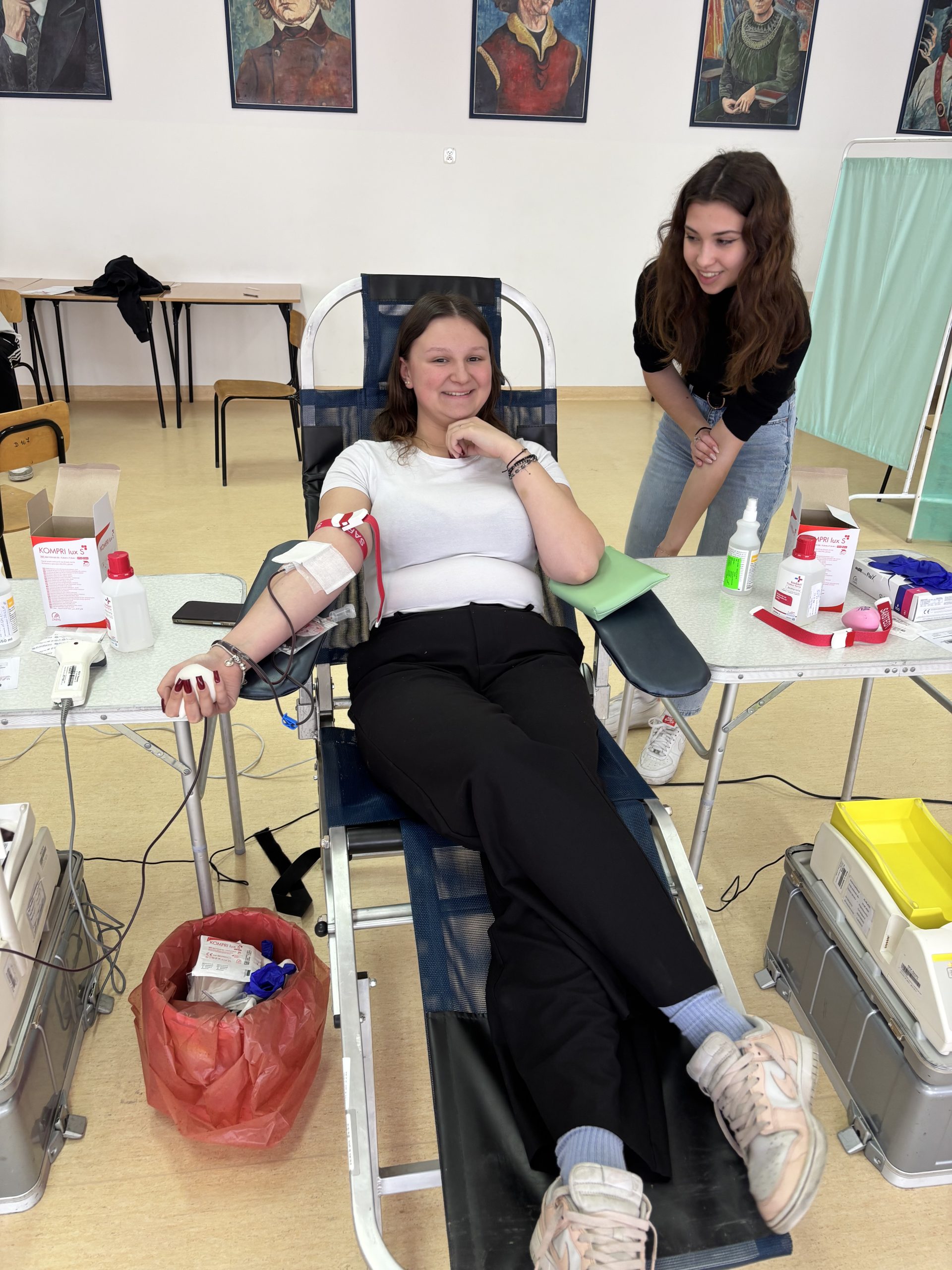 W naszej szkole odbyła się akcja krwiodawstwa zorganizowana we współpracy z Regionalnym Centrum Krwiodawstwa i Krwiolecznictwa w Rzeszowie. Inicjatywa spotkała się z dużym zainteresowaniem – do udziału zgłosiło się 45 chętnych uczniów, rodziców, pracowników szkoły i krwiodawców spoza szkoły . Po przejściu niezbędnych badań i kwalifikacji medycznej krew oddała znaczna część zarejestrowanych uczestników. W efekcie zebrano kilkanaście litrów krwi, która trafi do osób potrzebujących leczenia i ratujących życie transfuzji. Akcja przebiegła sprawnie i w bezpiecznych warunkach, pod czujnym okiem wykwalifikowanego personelu medycznego RCKiK. Dla wielu uczestników było to pierwsze doświadczenie z krwiodawstwem, ale nie brakowało także osób, które oddają krew regularnie, dając przykład odpowiedzialnej postawy społecznej. Dziękujemy wszystkim, którzy zdecydowali się wziąć udział w akcji. Oddana krew to realna pomoc i konkretne wsparcie dla chorych i poszkodowanych. Mamy nadzieję, że tego typu inicjatywy na stałe wpiszą się w życie naszej szkoły i będą cieszyć się równie dużym zainteresowaniem w przyszłości.