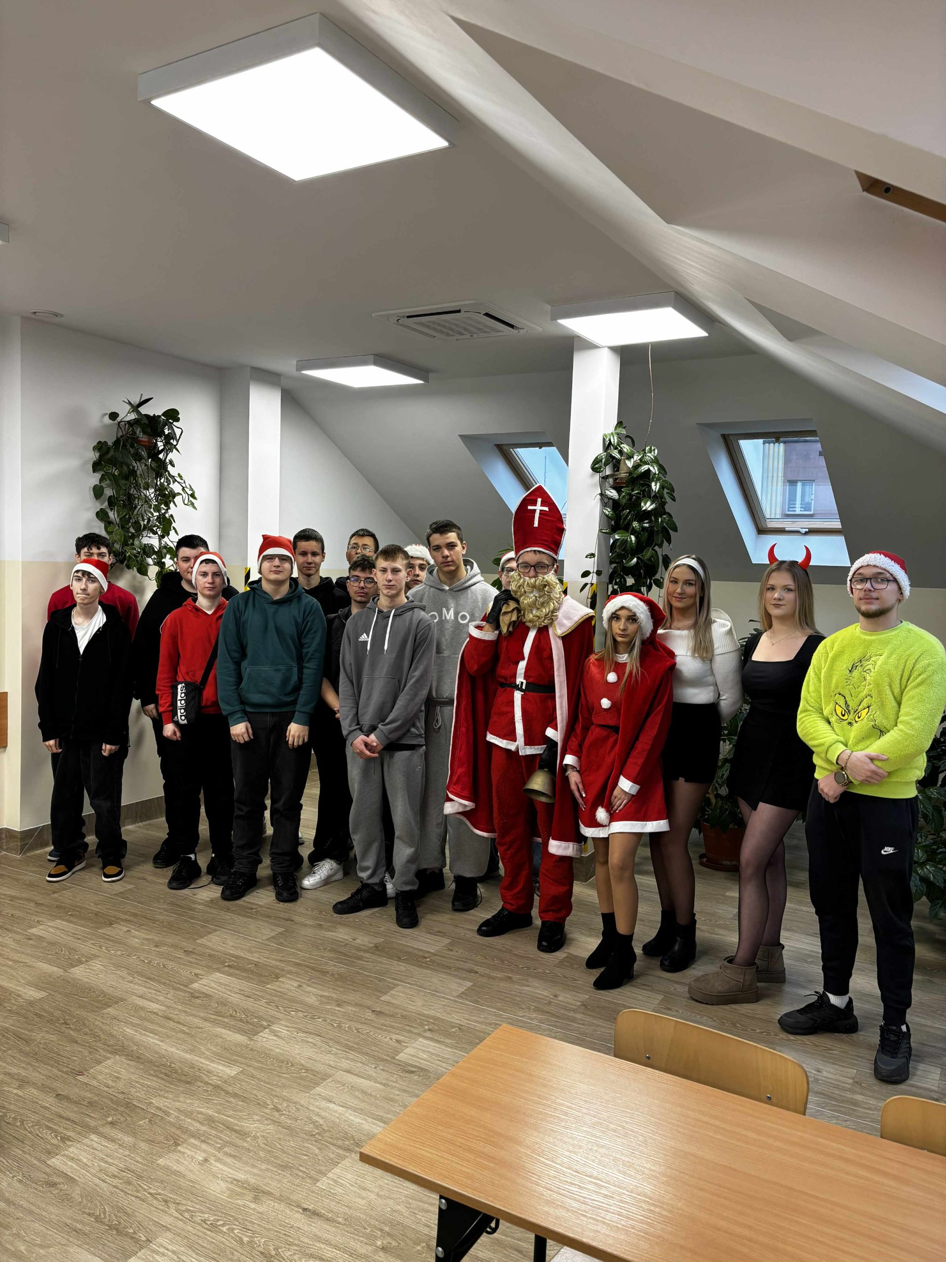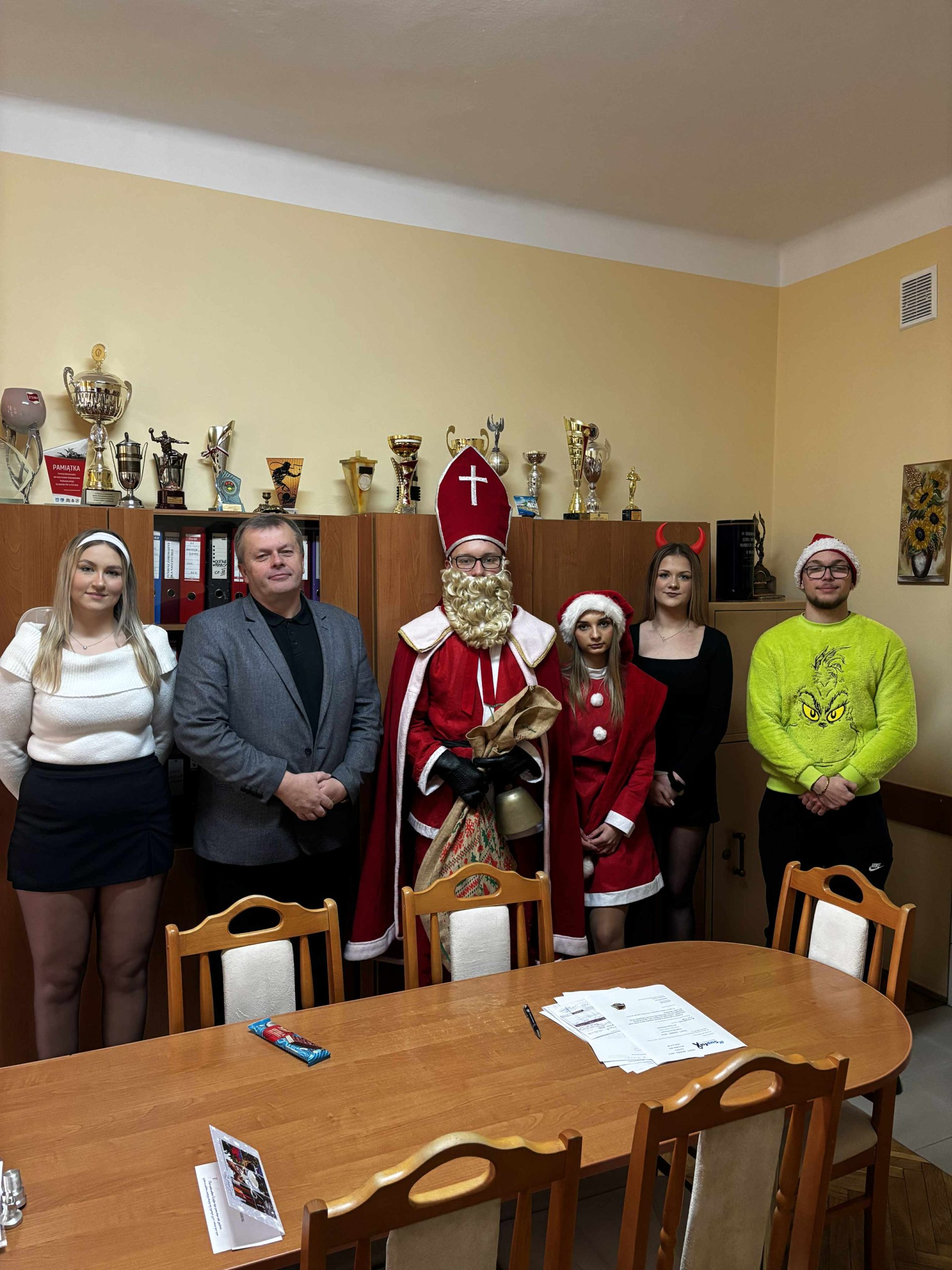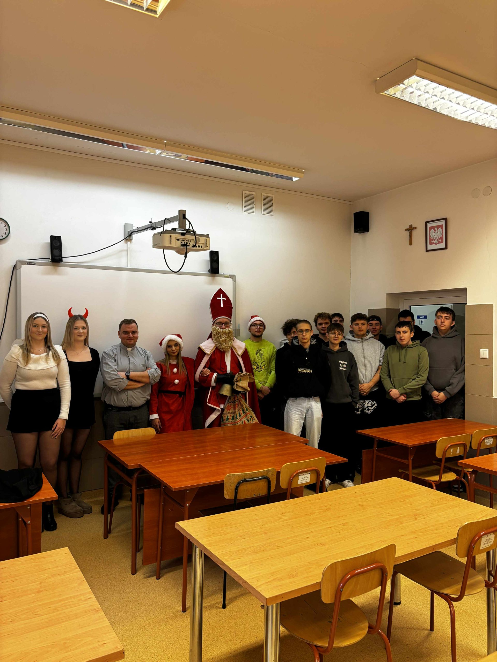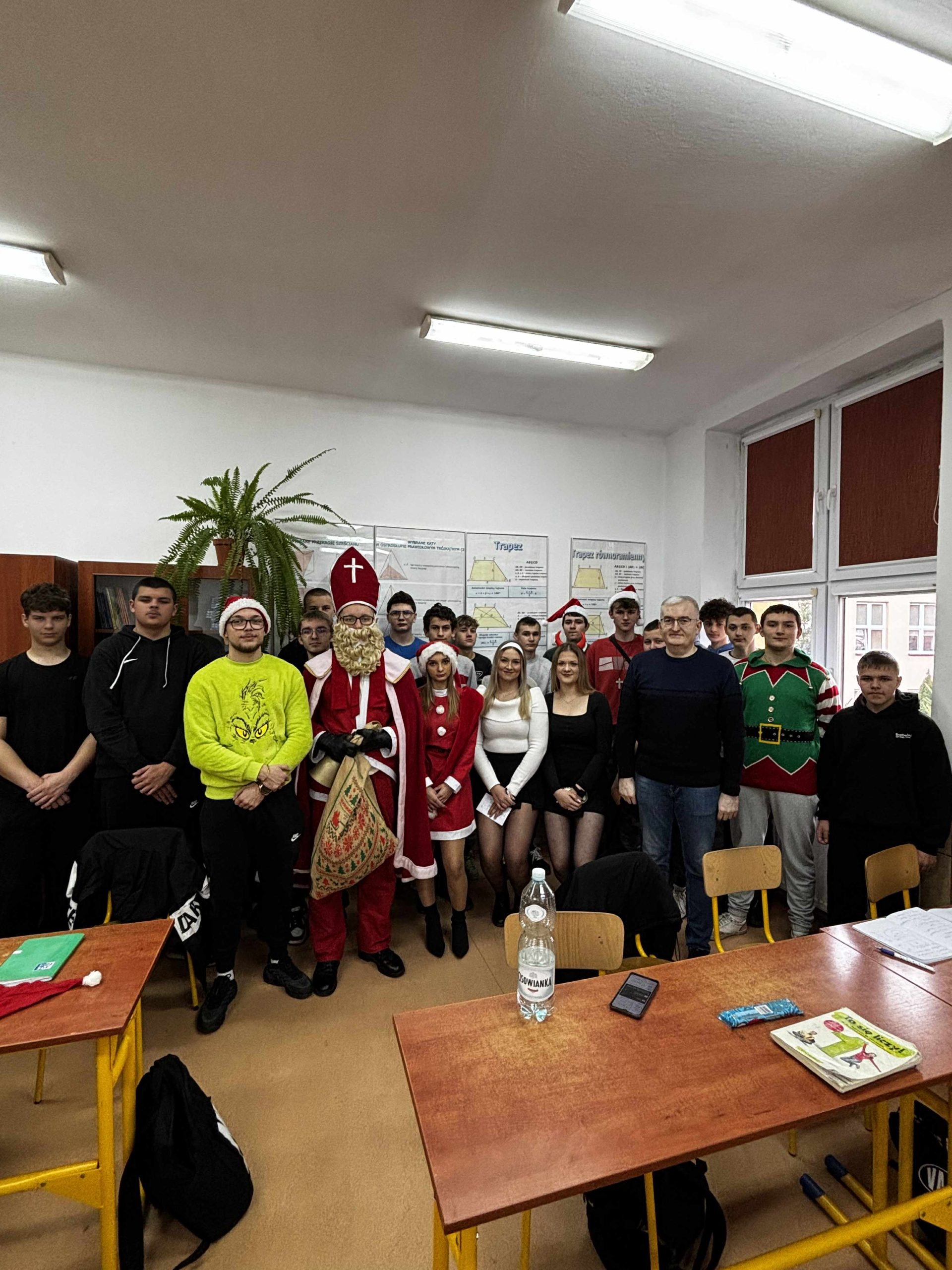 Dzisiaj, 5 grudnia 2025 r., Zespół Szkół Zawodowych w Przeworsku odwiedził niezwykły gość. Święty Mikołaj wraz ze swoimi pomocnikami przyszedł do grzecznych uczniów oraz nauczycieli i rozdał słodkie upominki. Samorząd Uczniowski zadbał również o świąteczny wystrój. Serdecznie dziękujemy Mikołajowi i zapraszamy znów za rok!