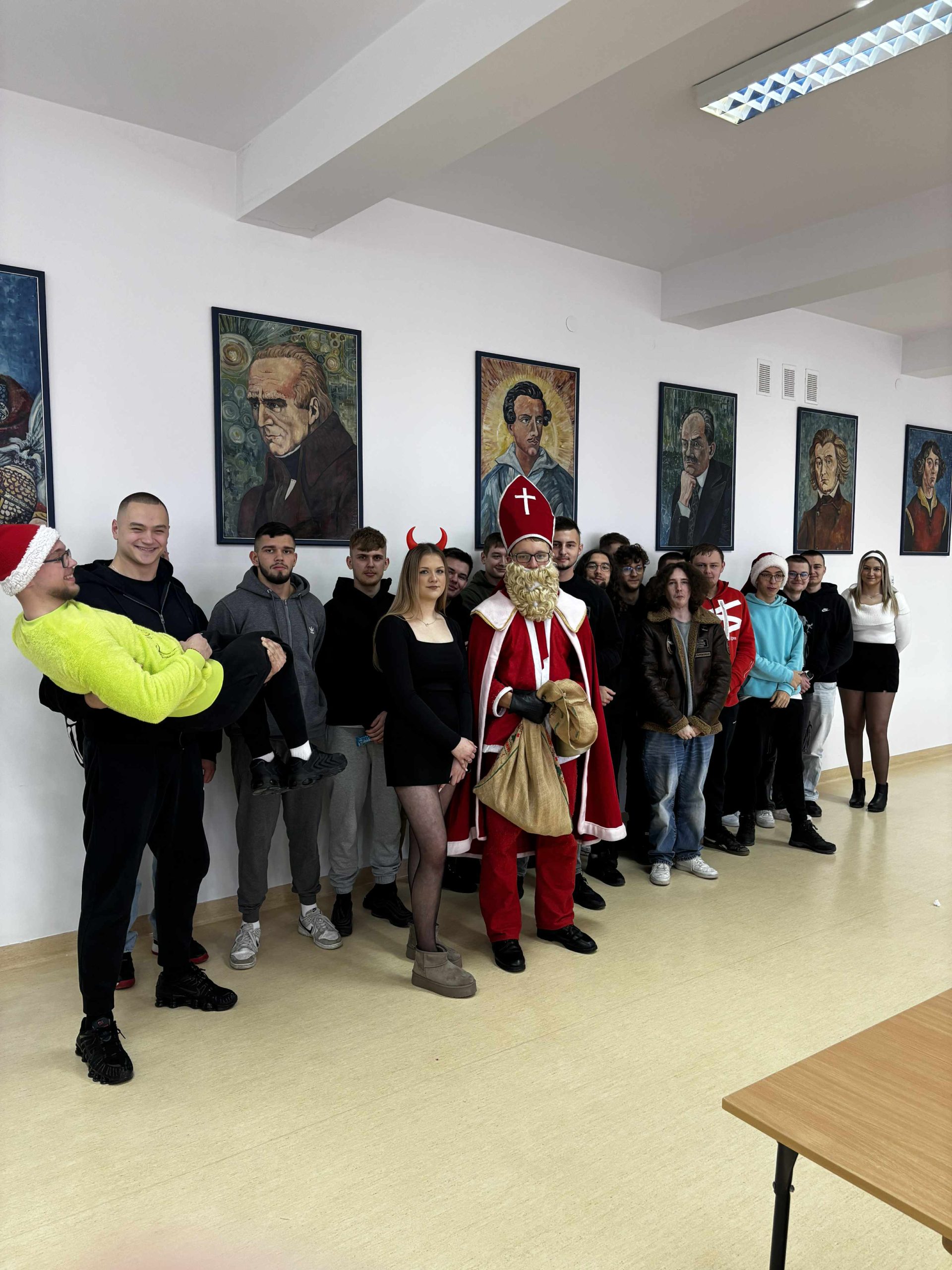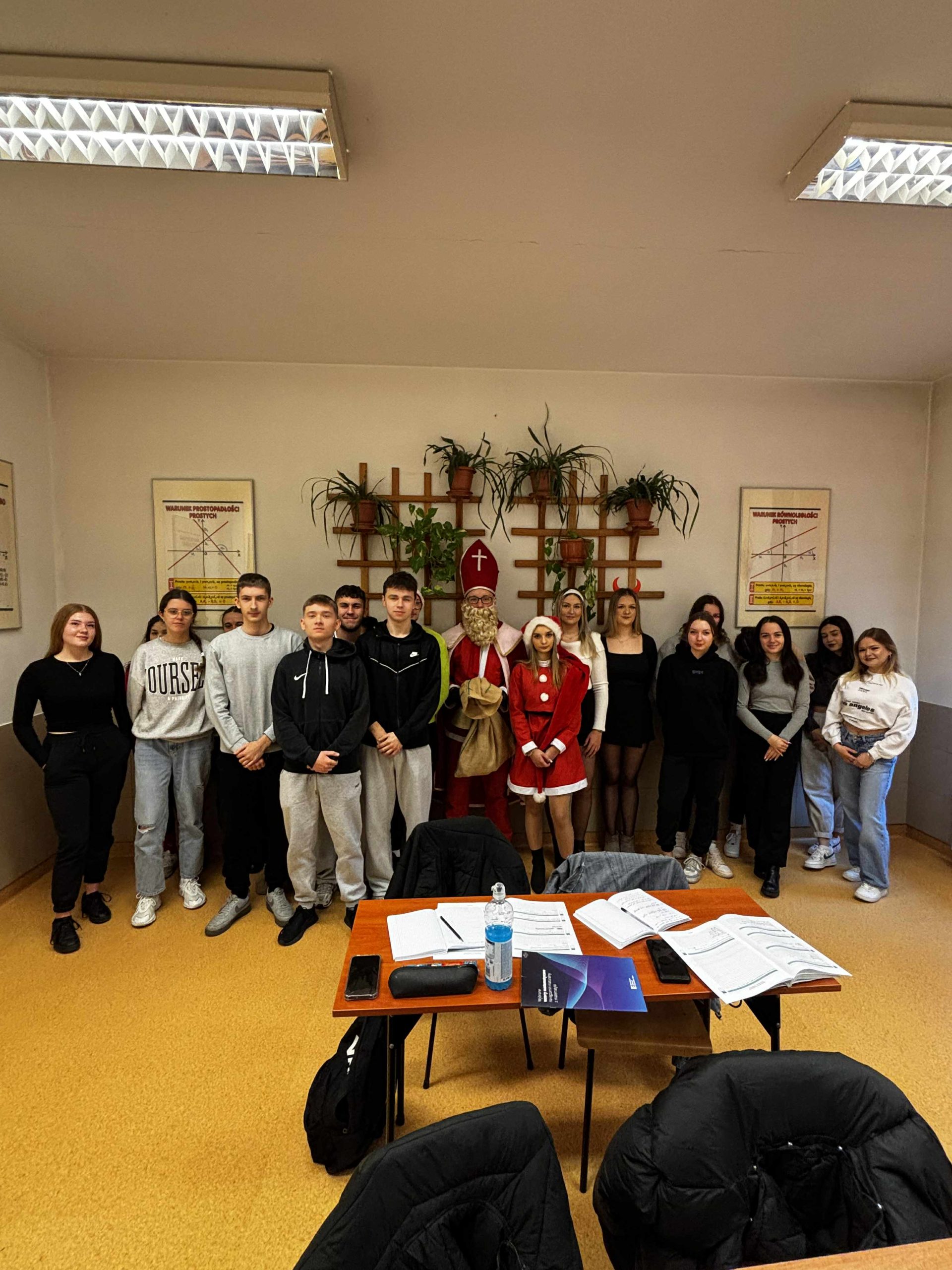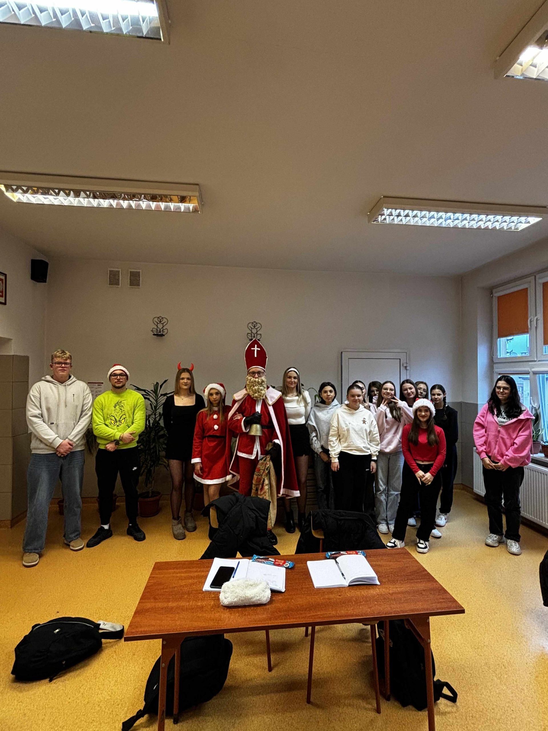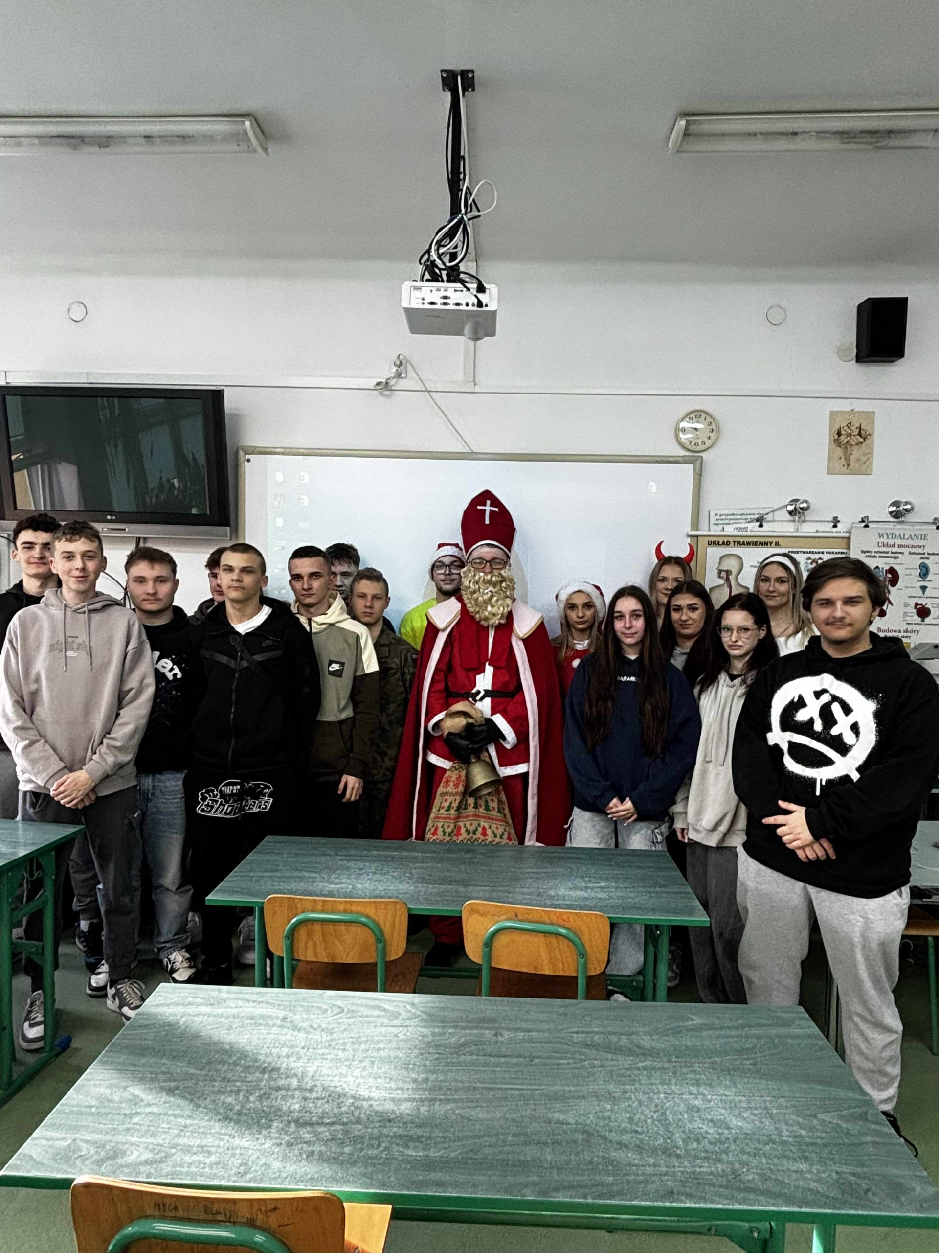 Dzisiaj, 5 grudnia 2025 r., Zespół Szkół Zawodowych w Przeworsku odwiedził niezwykły gość. Święty Mikołaj wraz ze swoimi pomocnikami przyszedł do grzecznych uczniów oraz nauczycieli i rozdał słodkie upominki. Samorząd Uczniowski zadbał również o świąteczny wystrój. Serdecznie dziękujemy Mikołajowi i zapraszamy znów za rok!