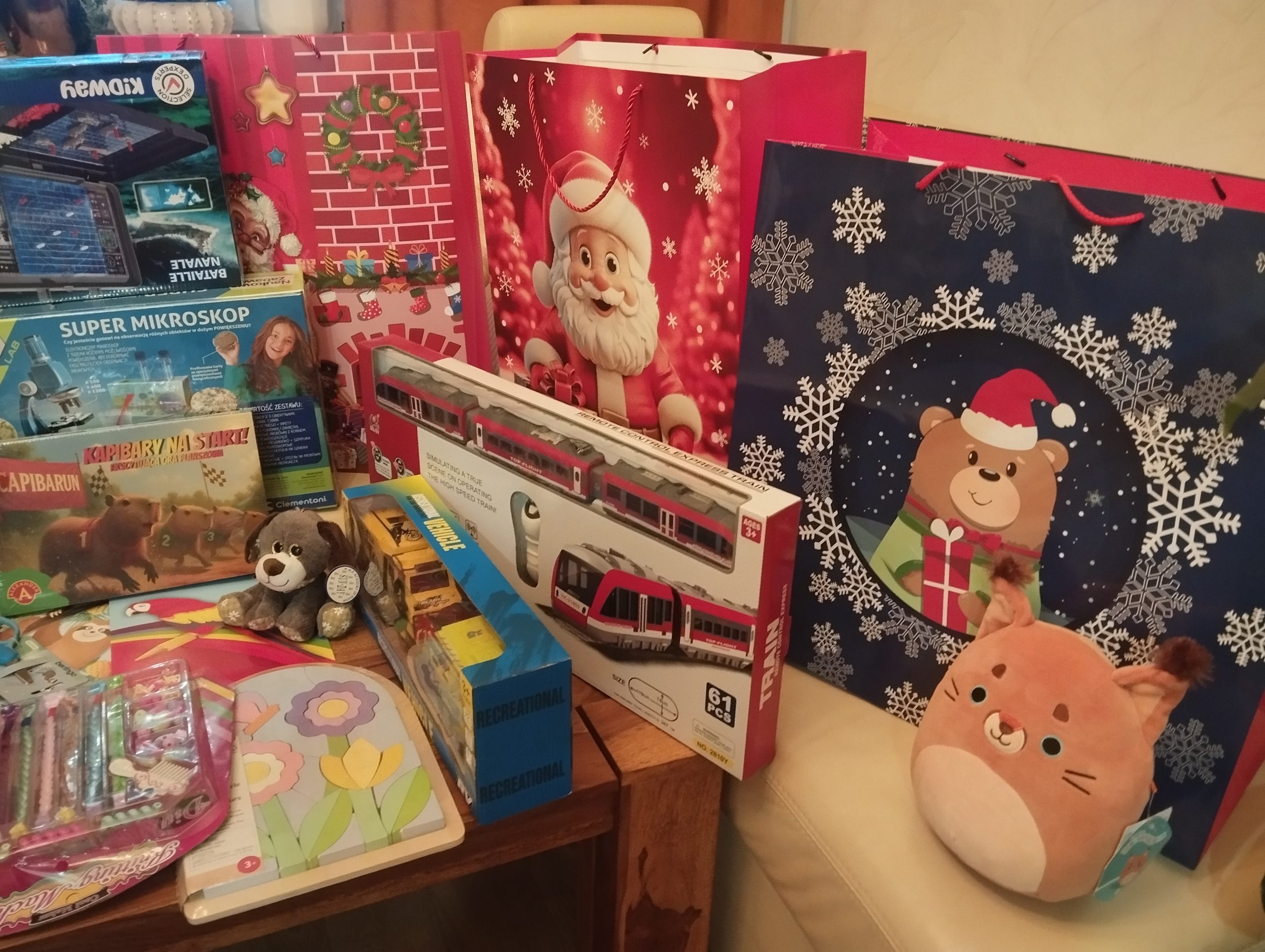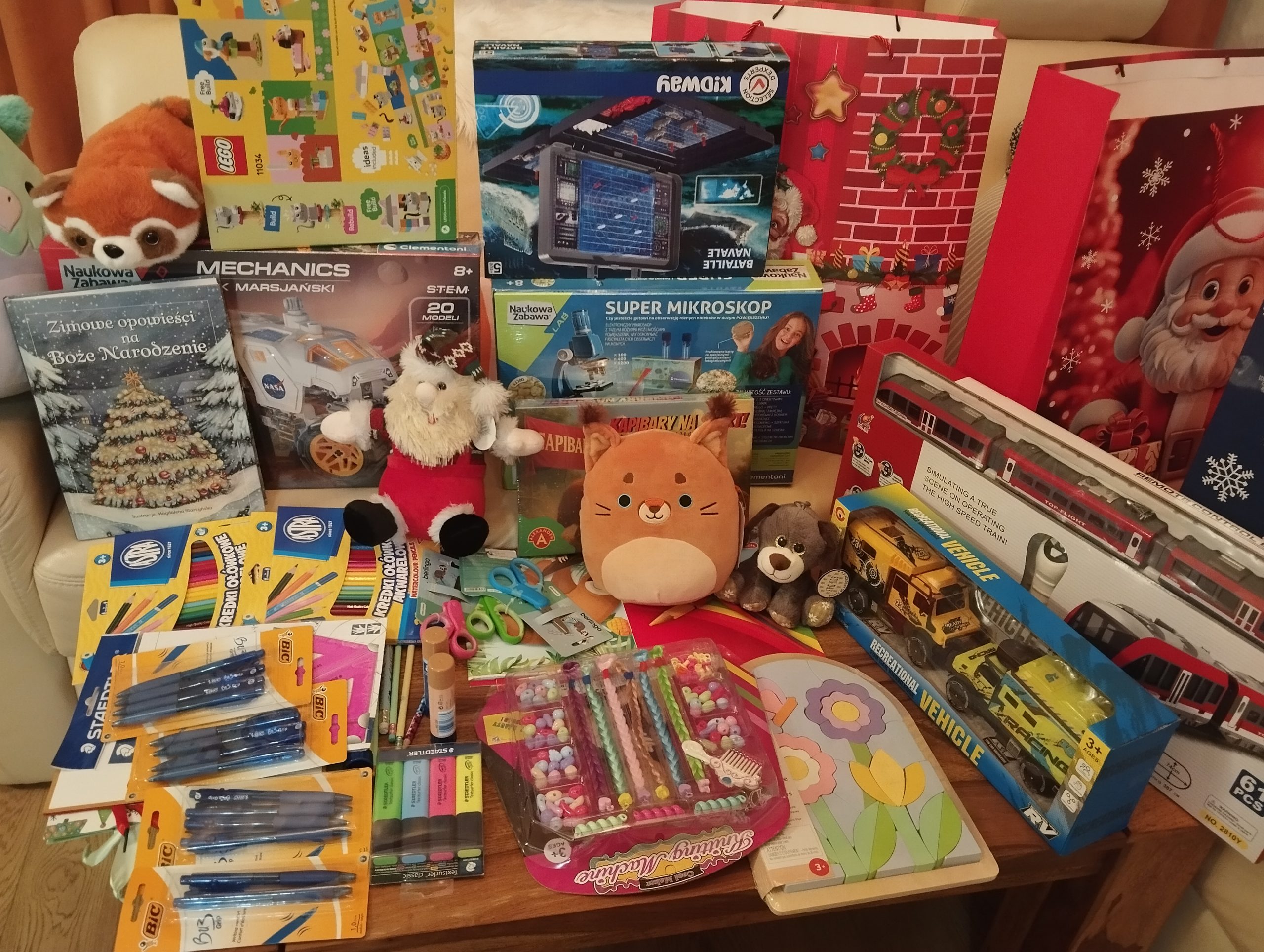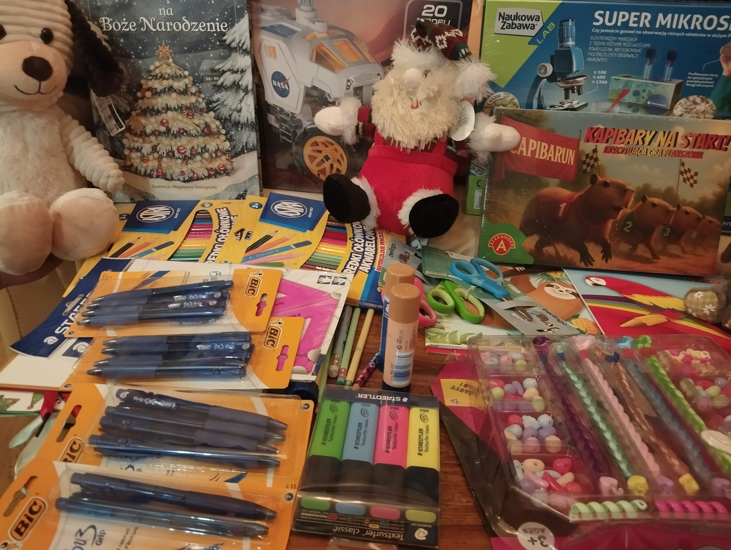 W środę 10 grudnia w godzinach popołudniowych wspaniała grupa młodzieży naszej szkoły wybrała się na spotkanie z wychowankami przeworskiego Domu Dziecka. W gorącym czasie mikołajkowym i przedświątecznym zmieściliśmy się na liście odwiedzających wolontariuszy. Rozpromienione twarze dzieci na widok tylu gości i pięknych zabawek były nagrodą za cały poniesiony trud włożony w organizację i przebieg szkolnego kiermaszu, robienia zakupów itd. Starsi wychowankowie zachwyceni byli mikroskopem, kolejką, grą “Bitwa morska” oraz budowaniem łazika marsjańskiego. Młodsze dzieci tworzyły egzotyczne zwierzątka z klocków lego, czesały ciekawe fryzury z koralikami i warkoczykami….Czas tak szybko mijał a dzieci i młodzież nie mogli się rozstać. Twórcza i kreatywna zabawa sprawiła dzieciom wielką radość.” Większa jest radość w dawaniu, aniżeli w braniu”, tego doświadczyli nasi wolontariusze. Bardzo dziękujemy wszystkim dobroczyńcom, którzy choćby w najmniejszym stopniu przyczynili się do szczęścia dzieci.