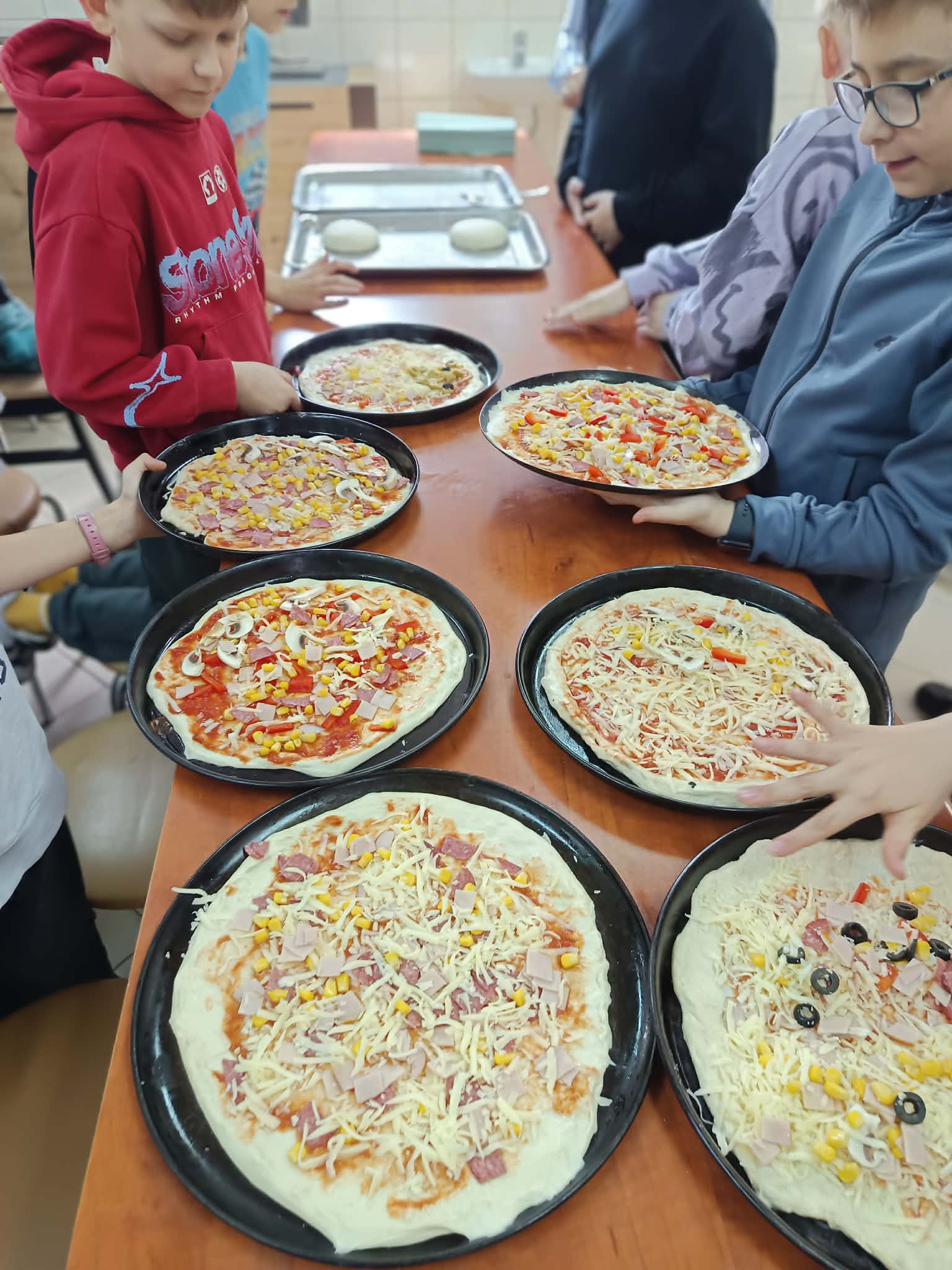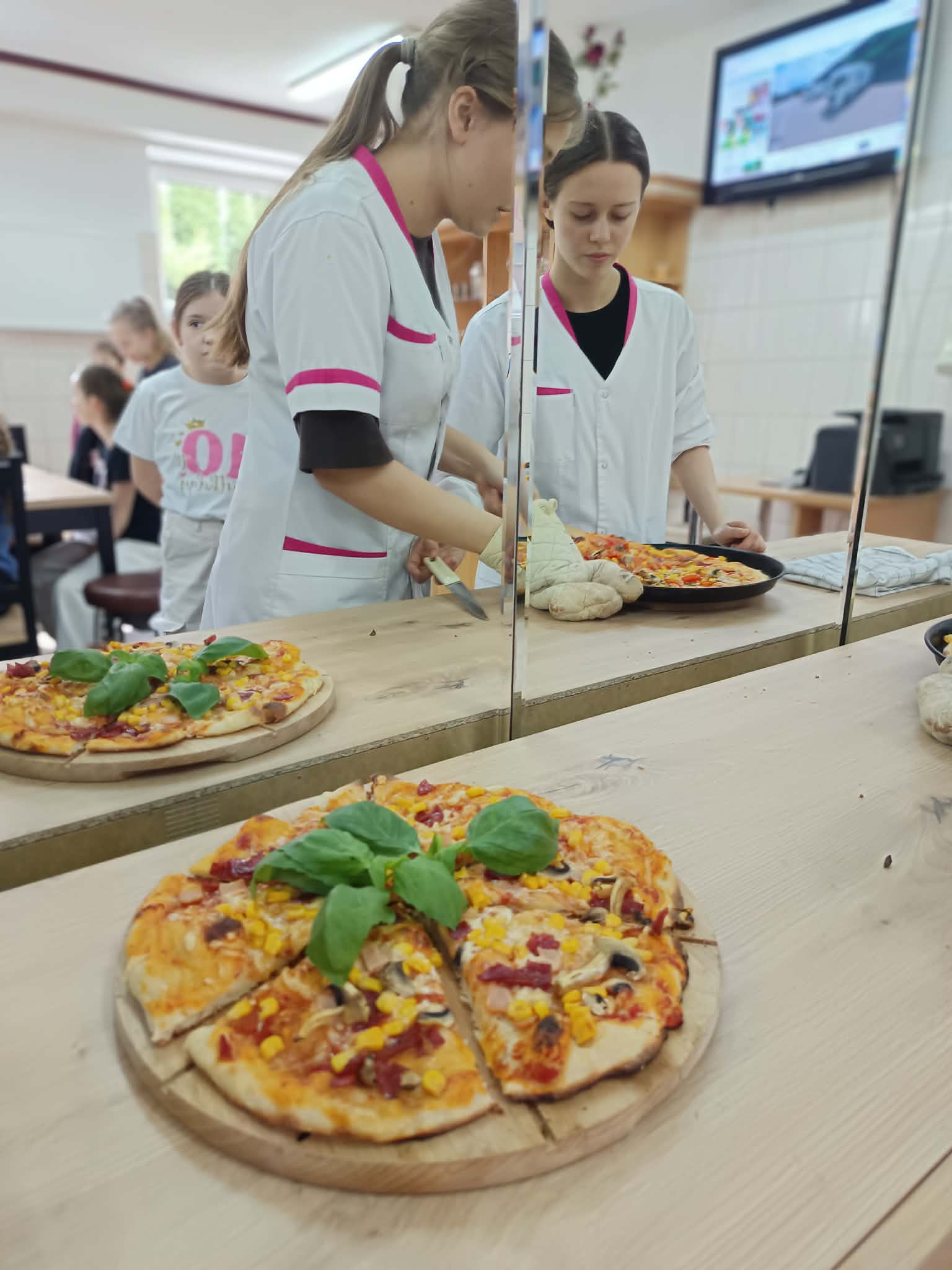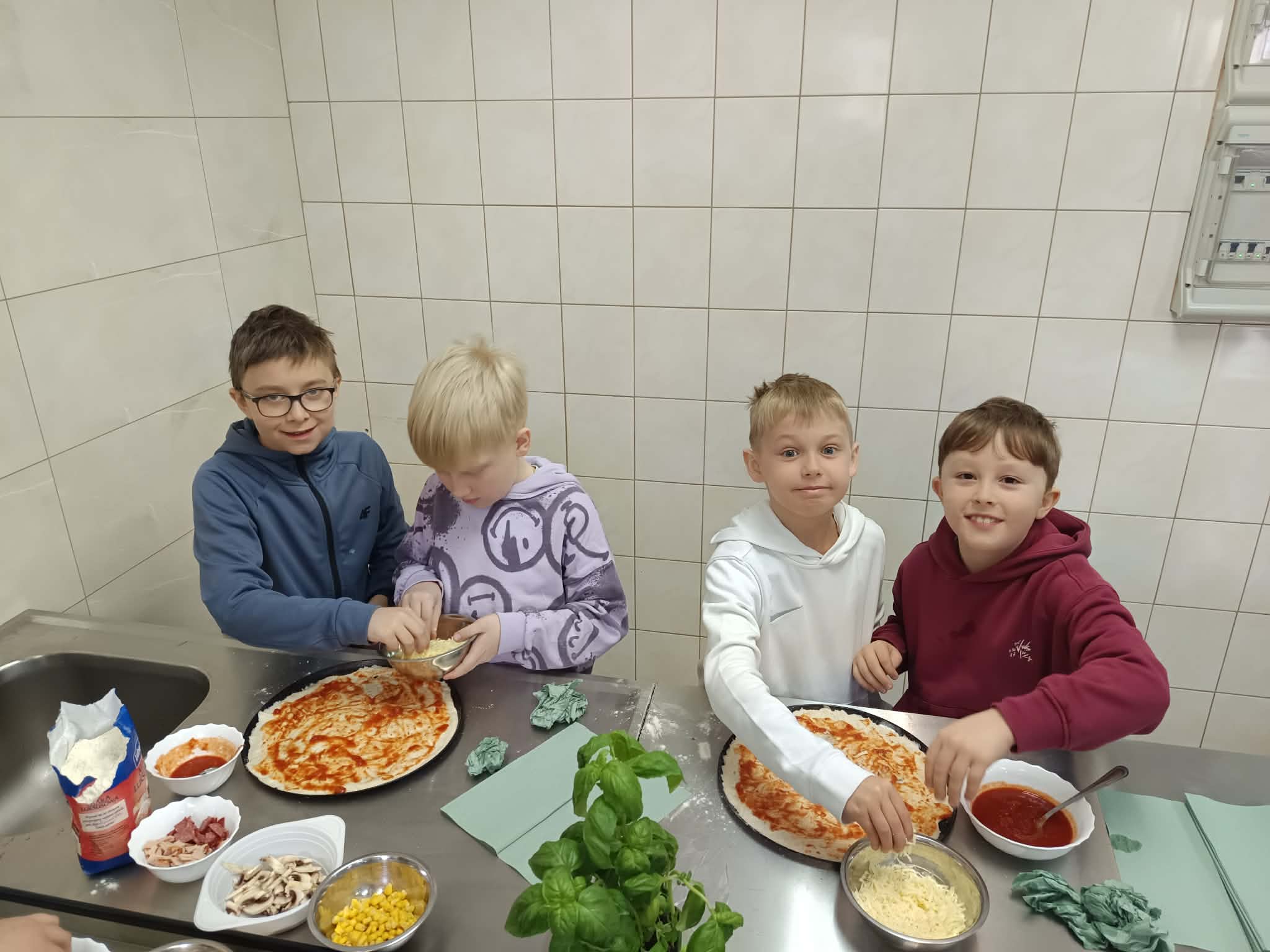 Kolejnym punktem programu była pracownia gastronomiczna, gdzie pod czujnym okiem pani Wiesławy Maciuły oraz uczennic klasy 2 IPZ odbyły się warsztaty kulinarne. Wspólne pieczenie pizzy dostarczyło wszystkim wiele radości i było pysznym zwieńczeniem wizyty.