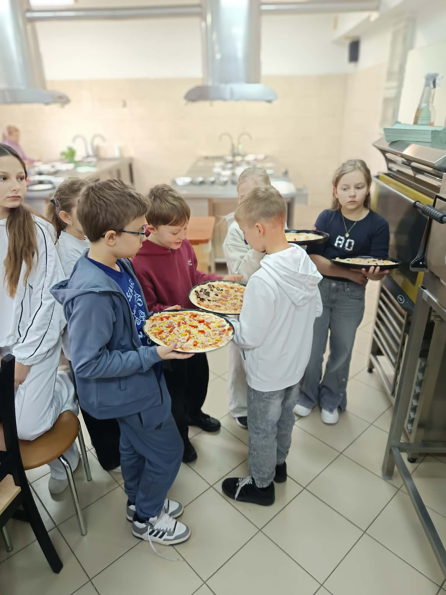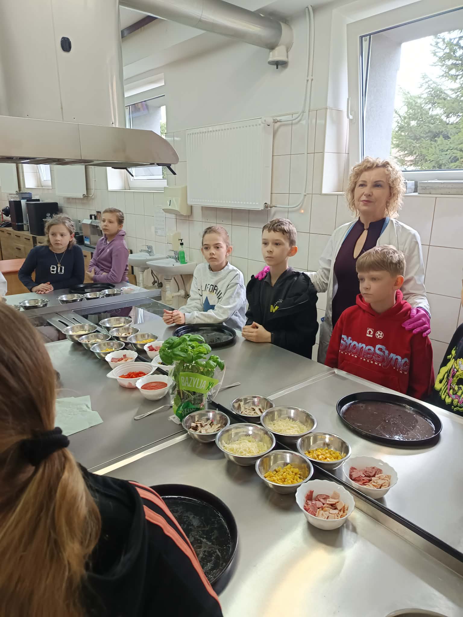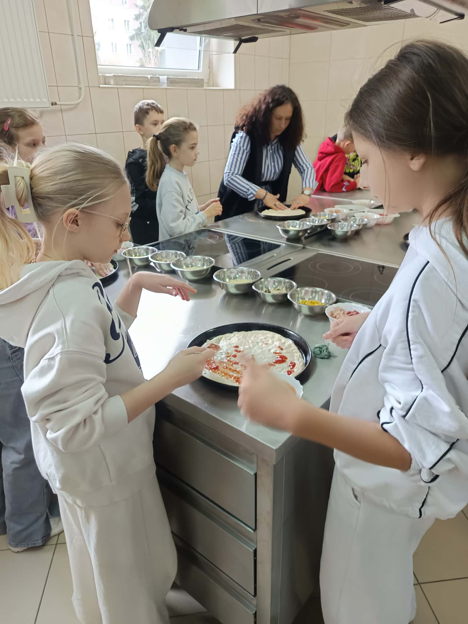 Kolejnym punktem programu była pracownia gastronomiczna, gdzie pod czujnym okiem pani Wiesławy Maciuły oraz uczennic klasy 2 IPZ odbyły się warsztaty kulinarne. Wspólne pieczenie pizzy dostarczyło wszystkim wiele radości i było pysznym zwieńczeniem wizyty.